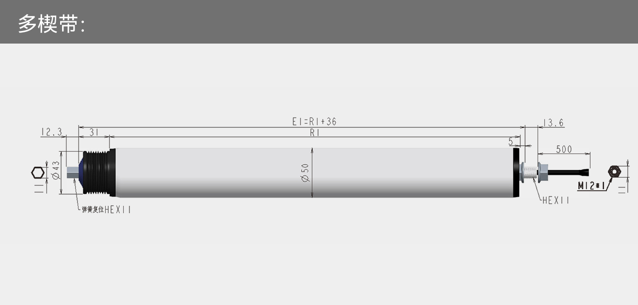 标准化产品:一般滚筒电机的长度为250~1500mm,直径为50mm、60mm、76mm、80mm、89mm。为了满足客户个性化的定制需求,客户可定制800mm以上的滚筒电机,且可带有多种链接方式:直通式、塑胶多楔带、金属多楔带、钢制双链轮、同步带轮,支持标准化生产制造。