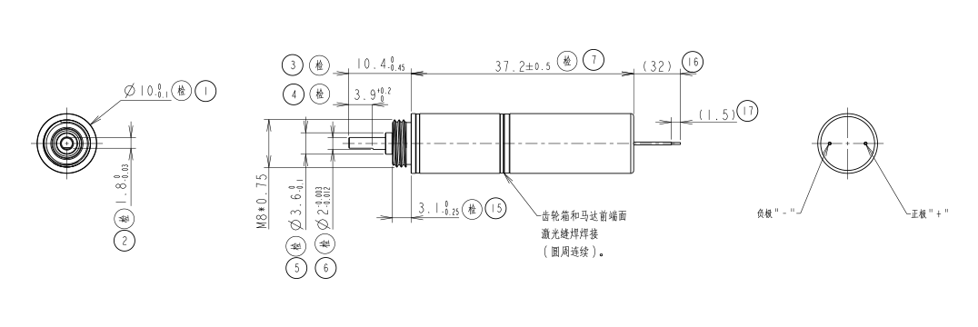 旋转方向:CW(电源正极接马达“+”,面对机壳轴伸端观察)